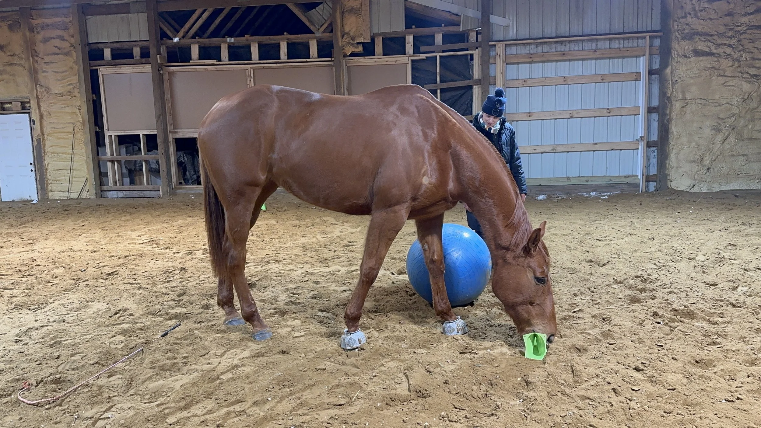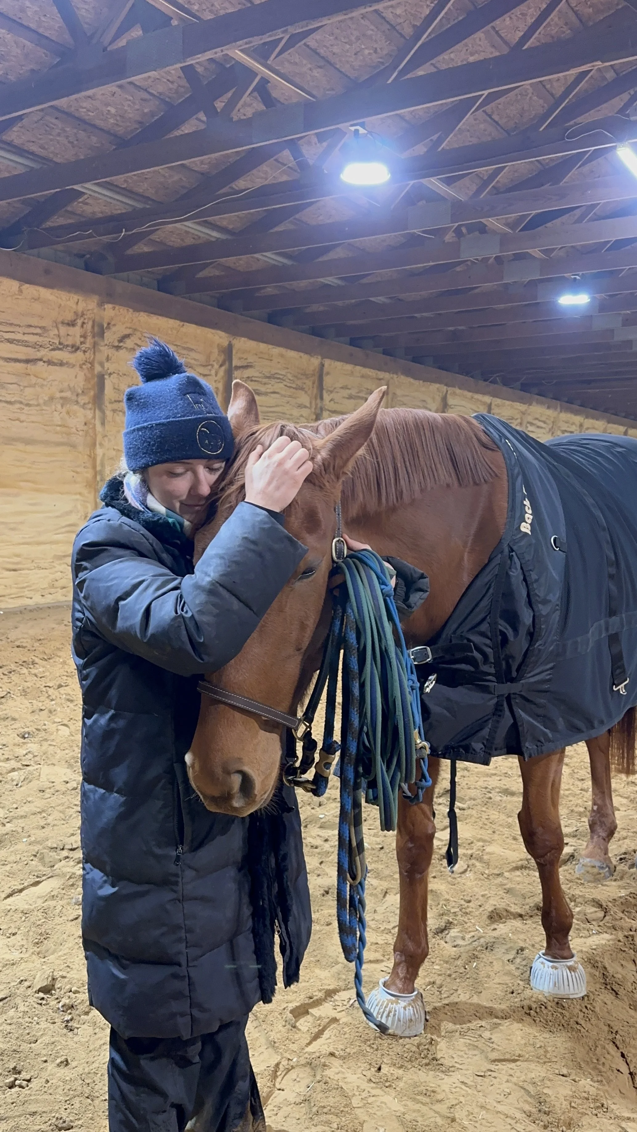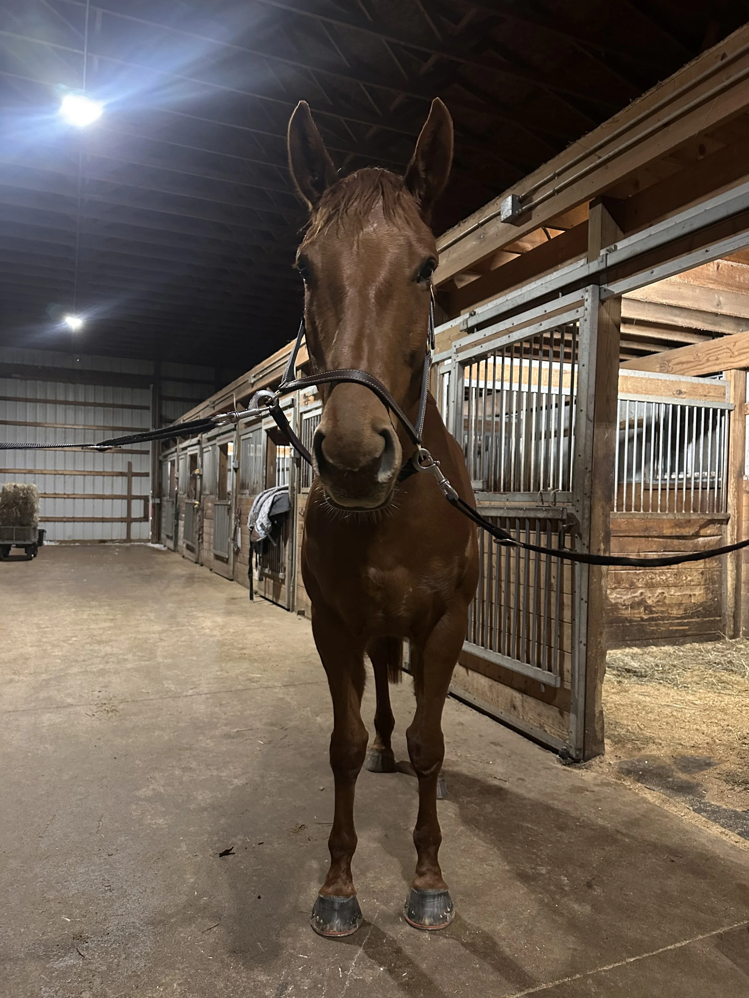 We unfortunately scheduled her shipping during the blizzard of the year, but that didn’t bother her at all. She happily loaded onto our small Euro-trailer in white-out conditions, and munched on hay all the way to the barn - through traffic jams, long hauls through the backroads, and while the snow trucks threw salt against the side of the trailer.