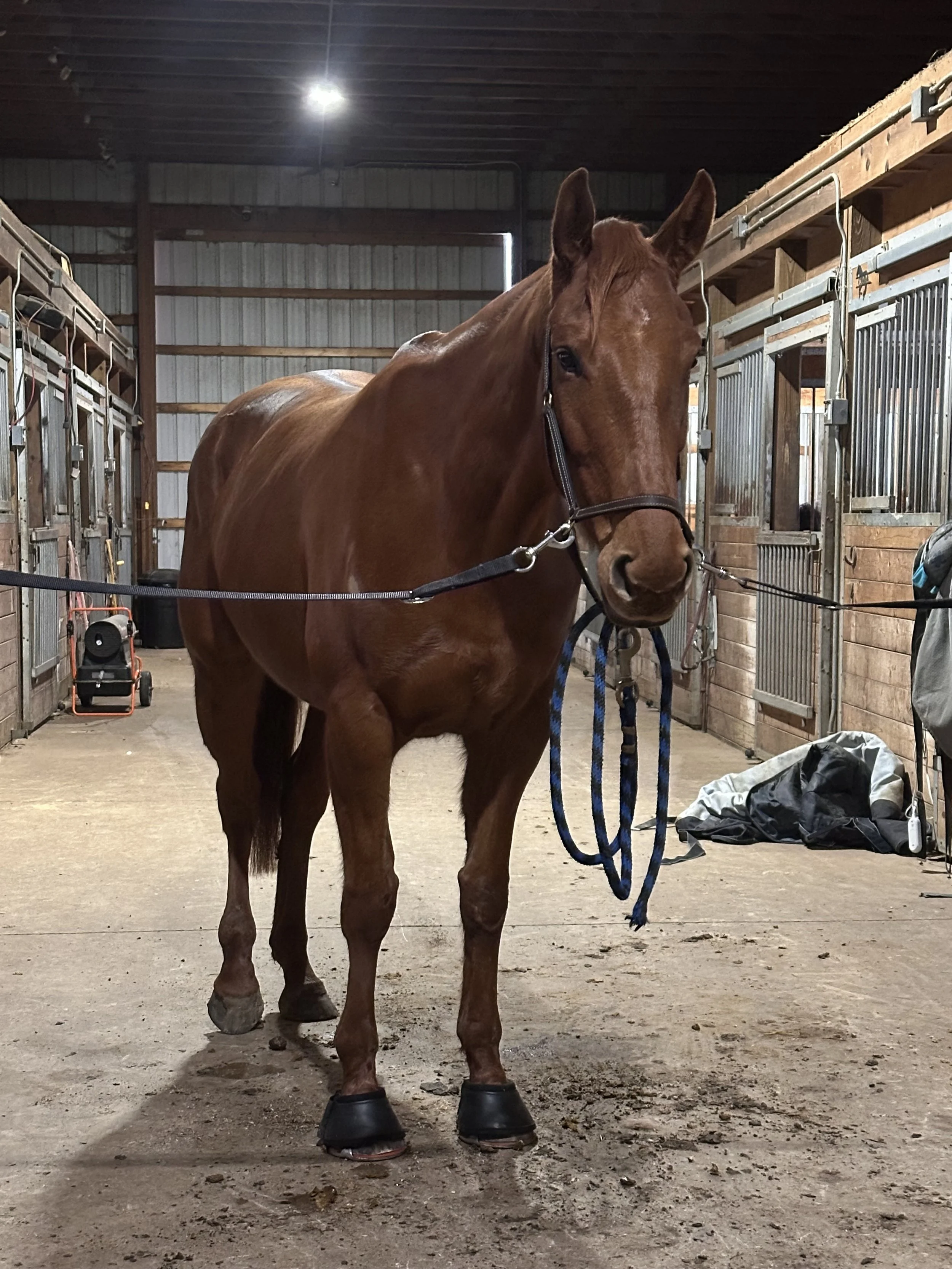 She has excellent, solid feet, cool, tight legs and joints, no abnormalities along the topline, a broad, open chest, clear lungs, clear eyes, and has recently jogged off sound for flexion of upper and lower limbs. She has shown no signs of lameness or loss of function. During her recent dental nothing remarkable was discovered.